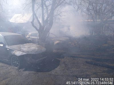 11 cai salvați din incendiu, la Câmpina. Autoturisme – cuprinse de flăcări