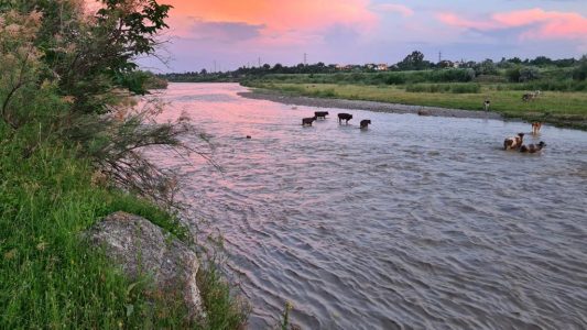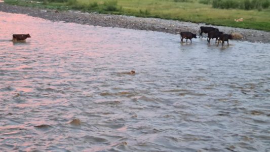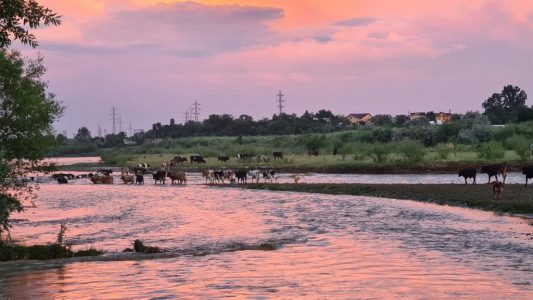 O cireadă de vite a rămas izolată pe o insulă formată pe râul Teleajen, umflat de debitul crescut, în urma ploilor căzute în ultima perioadă.