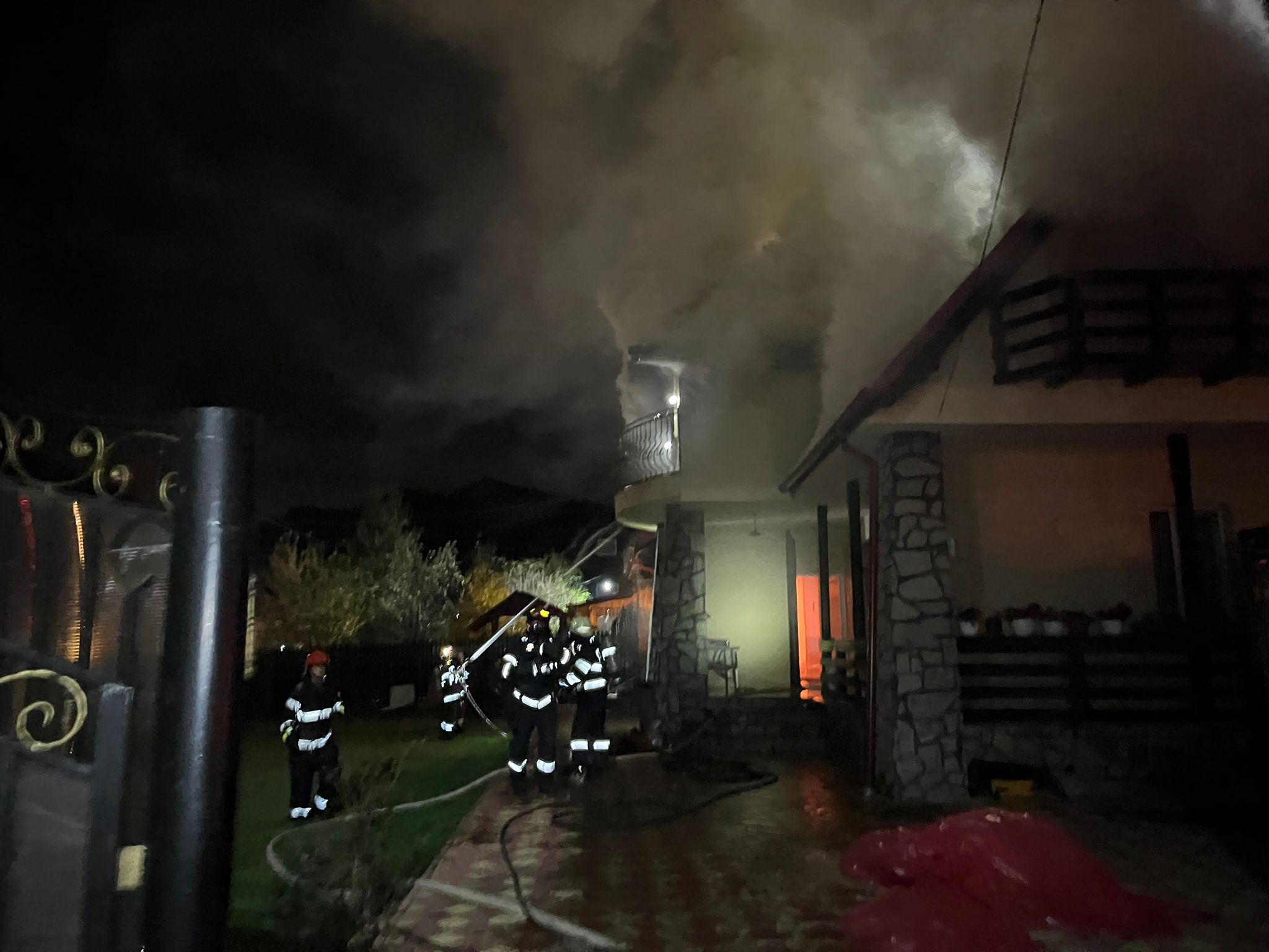 La sosirea echipajelor de pompieri focul se manifesta la nivelul acoperișului si a etajului unei locuințe, pe o suprafață de aproximativ 200 mp, astfel că forțele au fost suplimentate cu încă 2 autospeciale de stingere. Cauza probabilă de incendiu va fi stabilită ulterior.