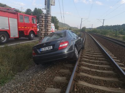 Accident bizar la Breaza. O mașină a blocat complet calea ferată timp de două ore