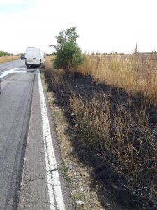 În timpul accidentului a luat foc și vegetația uscată de pe marginea carosabilului.