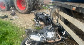 UPDATE: Din primele verificări efectuate s-a stabilit faptul că, un bărbat în vârstă de 50 de ani în timp ce conducea un tractor ce tracta o autoutilitară, pe DN1D pe sensul Ploiești-Urziceni, la km 15+900 a intrat în coliziune cu un motociclu condus de un tânăr în vârstă de 18 ani și cu un altul condus tot de un tânăr de 18 ani.