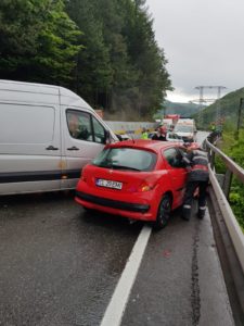 Impactul între cele două autovehicule implicate s-a petrecut la DN 1 km 114+650m, zona Posada. O persoană, şoferul din autoturism, în vârstă de 28 de ani, a rămas încarcerată.