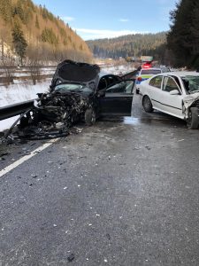 Un accident rutier grav a avut loc astăzi dimineață, pe DN1, la Azuga. Au intrat în coliziune două autoturisme, toți cei cinci ocupanți, răniți, fiind transportați la spital: cei doi conducători auto în vârstă de 55 și 66 de ani, două pasagere cu vârstele de 54, respectiv 57 de ani și o minoră în vârstă de 15 ani.