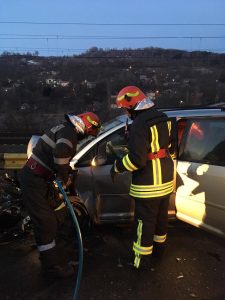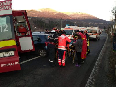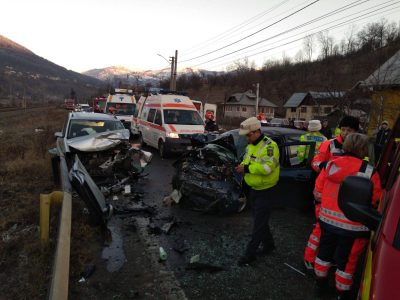 Azi dimineaţă, a avut loc un accident grav pe DN 1, în localitatea Comarnic. În jurul orei 8.30, la kilometrul 109+800, în cartierul Posada, două autoturisme s-au ciocnit frontal. Se pare că s-ar fi petrecut o pătrundere pe contrasens, din primele cercetări. 5 persoane au fost rănite în impact, fiind nevoie de intervenţia pentru descarcerare la unul dintre autovehicule. ISU Prahova a trimis şi o ambulanţă SMURD, dar şi o autospecială de lucru cu apă și spumă pentru cazul în care ar fi izbucnit un incendiu.