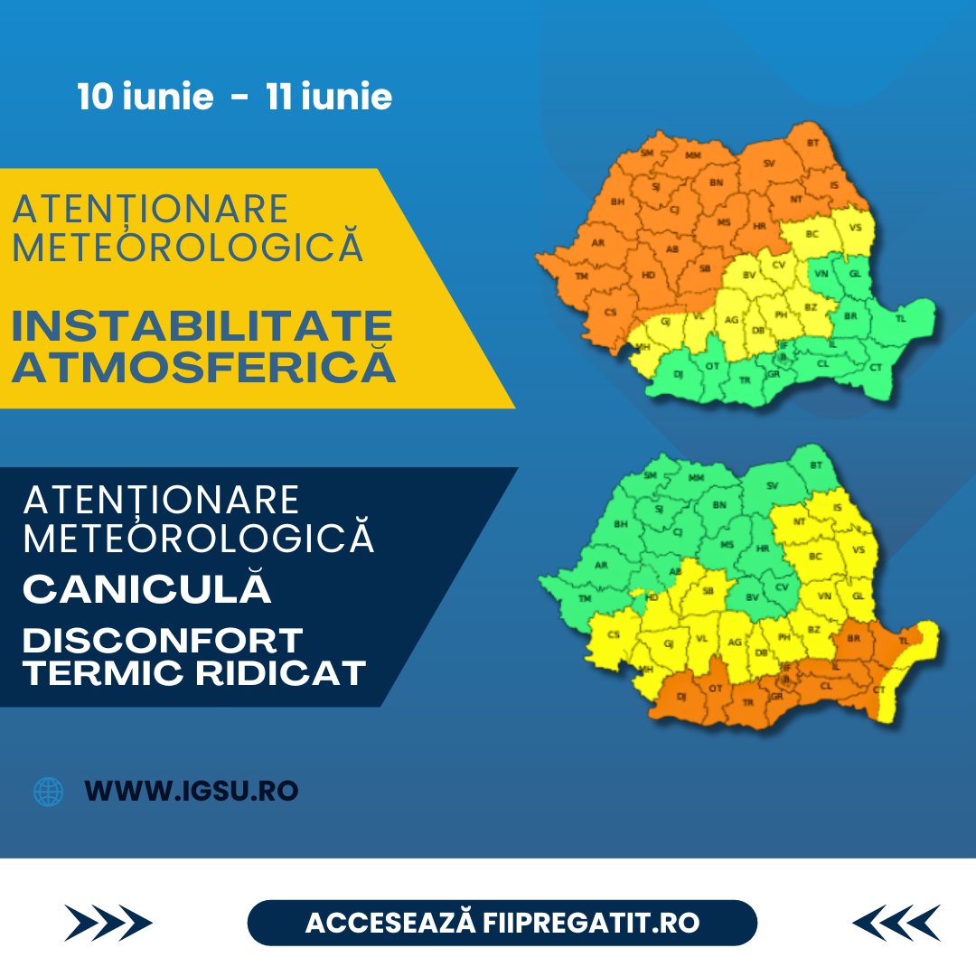 În același timp a fost emisă și o avertizare meteorologică de caniculă și disconfort termic, valabilă până mâine la ora 10.00!