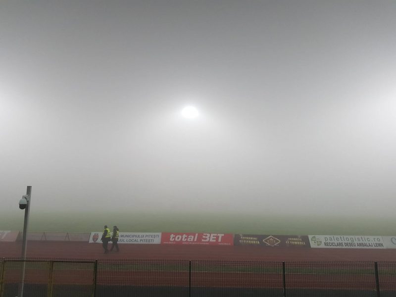 Arena din Trivale, învăluită în ceață! Pericol de întârziere a debutului meciului FC Argeș – FC Petrolul!