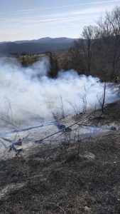 Incendiul s-a manifestat la litieră și vegetație uscată, pe o suprafață de aproximativ 10 hectare.