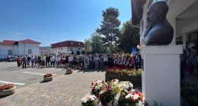 Evenimentul a debutat cu depunerea de coroane la bustul savantului, ceremonie urmată de deschiderea oficială din sala Centrului Cultural “Nicolae Iorga”.