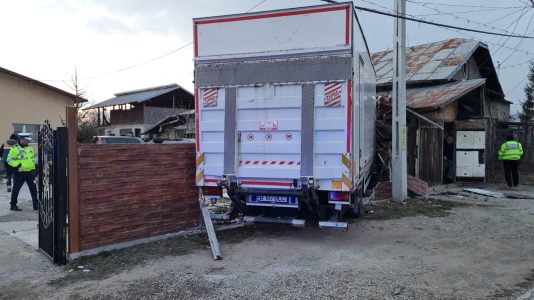 Deplasați la fața locului, polițiștii au constatat faptul că un autocamion, încărcat cu produse frigorifice, condus de un bărbat în vârstă de 52 de ani ar fi pierdut controlul direcției de deplasare și ar fi intrat în coliziune cu gardul unui imobil, respectiv cu o anexă (garaj) dintr-o curte alăturată.