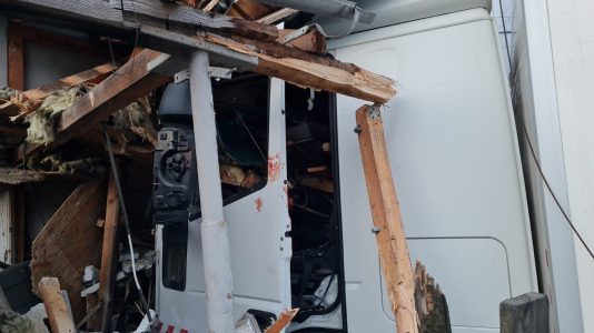 Autocamion scăpat de sub control pe DN1A a trecut ca prin brânză prin gardurile din Lipănești