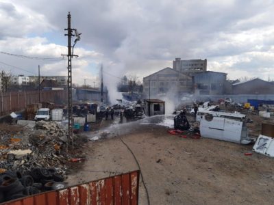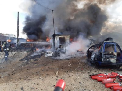 Autoutilitatră plină cu baterii de telefon a luat foc cu tot cu un centru de autoturisme dezmembrate, la Pleaşa