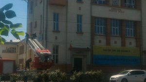După ce au început să se desprindă bucăţi din construcţie de la nivelul acoperişului (streaşină), au fost informaţi cei de la ISU Prahova, care s-au deplasat la faţa locului cu o automacara, pentru a lua primele măsuri şi a pune zona în siguranţă, interzicând circulaţia pe trotuar şi, pentru o perioadă, pe prima bandă a carosabilului . Când pompierii au acţionat cu o cange, au constatat că se desprind uşor bucăţi de tencuială şi în alte zone ale faţadei clădirii, dar şi din curtea interioară. Asta după ce, cu doar doi ani în urmă, şcoala a suferit importante lucrări de reparaţii.