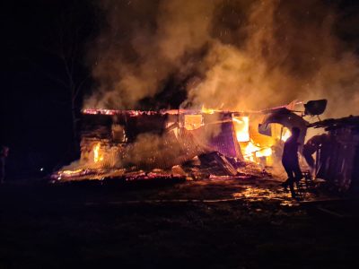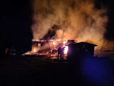 Casă mistuită de flăcări, azi noapte, la Scorțeni