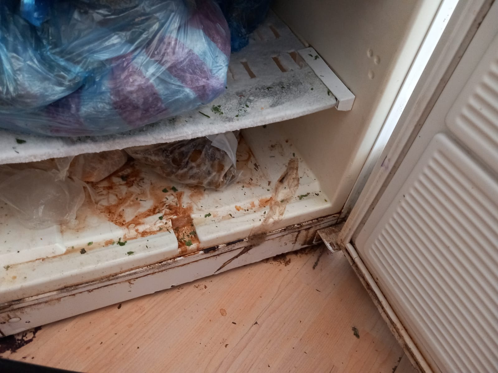 – utilizarea unor spații destinate depozitării produselor, respectiv agregate frigorifice neigienizate, cu urme de rugină și resturi alimentare, amplasate pe paviment neigienizat