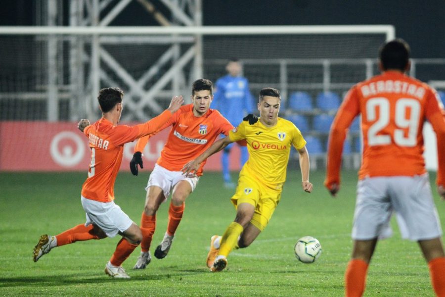 “Fisura” din defensivă se consemnase în zona căpitanului Andrei Răuță. S-au prins și moldovenii de asta, mai precis că ar fi o “pâine de mâncat” pe acolo. Mai ales că înaltul fundaș central dreapta al găzarilor fusese și avertizat în minutul 30. I-au mai trebuit încă aproape 10 minute ca să “redicidiveze”- este de revăzut faza în care el a părut extrem de simplu depășit și a faultat decisiv la 17 metri de buturile lui Kitanov! – și să fie penalti. Bașca, eliminare, pentru al doilea cartonaș galben! La primul, a ieșit eurogolul fostului junior al Pandurilor Târgu Jiu, Patrick Popescu (31), șut la “păianjen”, din lovitură liberă, la al doilea, arbitrul Mircea Ardelean – un cavaler al fluierului de viitor, din Arad – a pus corect mingea pe var, așa cum se zice în jargonul fotbalistic, iar căpitanul Cătălin Vraciu (40) a transformat simplu, cu o fentă. Un 0-2 incredibil, dar adevărat! Dar, se putea drege busuiocul la voleul lui Alexandru Saim Tudor, care a fost deviat cu cotul de același Vraciu, din careul mare. Era minutul 45 și Petrolul putea reintra în joc. Botic a vrut să execute el, dar – deh! – Saim este la Petrolul încă din Liga a III-a și a trebuit ca străinul să cedeze! Râmniceanul a tras și el cu fentă, însă balonul era să-l… lovească pe copilul de mingi din spatele porții lui Lucian Cebotari (22 de ani), un foarte bun portar moldovean de peste Prut, altfel!