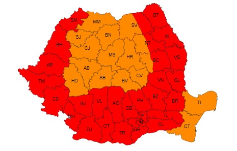 Administraţia Naţională de Meteorologie a emis următoarea avertizare tip COD ROŞU: