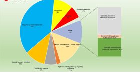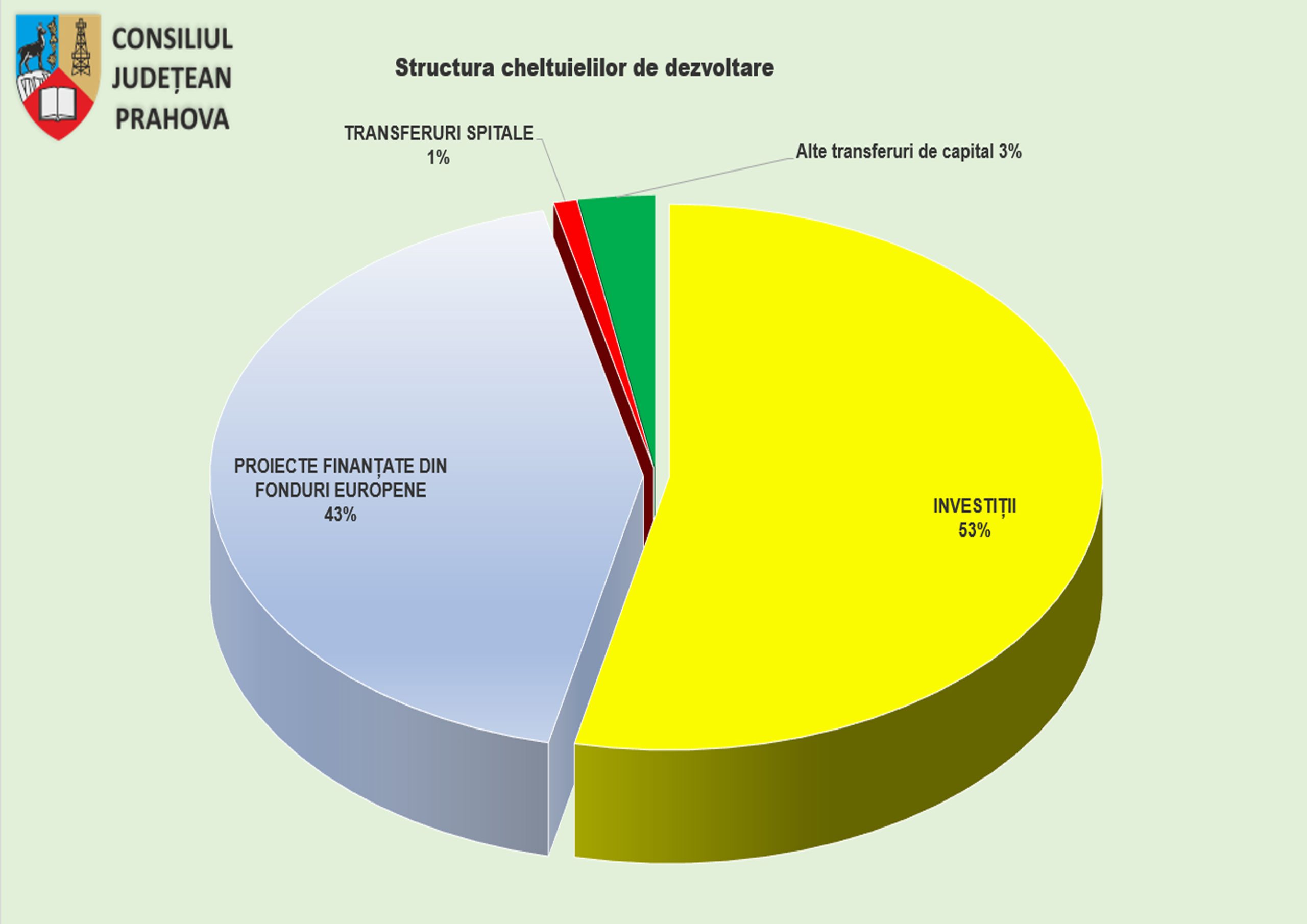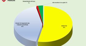 Din structura bugetului de dezvoltare, aproximativ 43% din bani provin din fonduri europene: fie structurale, fie prin PNRR. Cuantumul total al acestor fonduri se cifrează la 512,3 milioane de lei, ceea ce este un număr superior întregului buget de funcţionare.