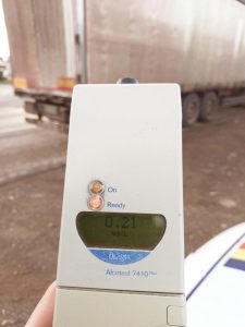 1. Un bărbat în timp ce conducea un ansamblu de vehicule în localitatea Bucov a fost testat cu aparatul etilotest, rezultatul fiind de 0.18 mg/l alcool pur în aerul expirat.