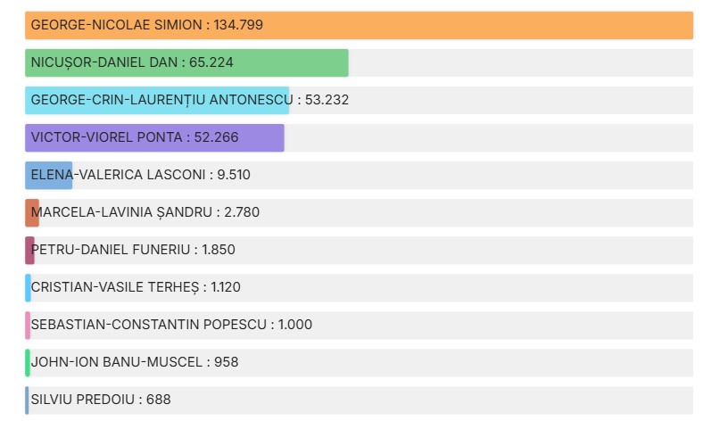 3. GEORGE-CRIN-LAURENȚIU ANTONESCU | 53.232+966 | 16,46 % |