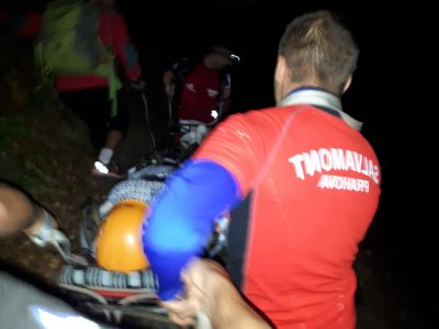 Operaţiunea de salvare a celor doi s-a prelungit şi pe întuneric pentru că una dintre victime nu a mai putut să meargă şi a fost transportată cu targa.