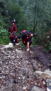 Operaţiunea de salvare a celor doi s-a prelungit şi pe întuneric pentru că una dintre victime nu a mai putut să meargă şi a fost transportată cu targa.