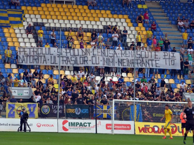 Preconizatul duel dintre frații Plămadă, “petrolistul” Florin, respectiv “polistul” Ionuț, nu a avut loc de la începutul partidei din etapa a VIII-a a campionatului Ligii a II-a, ci de-abia din minutul 70, atunci când “nenea” a intrat pe teren, fiind menajat ulterior calificării în faza următoare a Cupei României. Meciul de pe arena Ilie Oană a început cu ochii întregii asistențe pe fabuloasa scenografie 3D, creație marca “Peluza Latină”, care merită savurată în poza ce face mai mult – știți cum se spune – decât 1000 de cuvinte! La rândul ei, P1 a afișat un banner sugestiv. Pe acel fond senzațional, cu ultrașii lui Poli, urmașa celei originale, răspunzând cu fluturări de steaguri alb-violete, a avut loc o fază ce-a stârnit controverse. Unele rezolvate abia după câteva reluări din carul TV! Abia atunci s-a observat clar că arbitrul Nagy nu observase că, la trimiterea balonului, cu capul, înspre propriile buturi, după un corner, a lui Plămadă jr., goal-keeper-ul Tordai a prins balonul dincolo de linia porții! Cu întreaga circumferință a obiectului de joc în spatele acesteia! Gol perfect valabil, sau, mă rog, autogol, care nu a fost validat de un târnăr central! Cel care, în rest, a condus bine. Dându-și seama că nu era de glumă cu “băieții în ghete”, petroliștii au început asediul asupra careului acestora și a porții unui alt apărător al buturilor împrumutat de Gică Hagi la o echipă din Liga 2, Murariu. Totuși, cel puțin în prima repriză, cel din urmă nu a fost prea deranjat, deoarece centrările sau pasele ploieșenilor erau rezolvate de către înalții și destul de precișii, în acel interval de timp, apărători ai trupei bănățene.