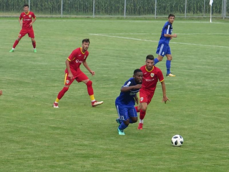 Meritoriu, Slaven a venit la Cvetkovec cu cea mai bună echipă și a făcut astfel ultima repetiție pe o suprafață de joc cu un gazon excelent, dar pe o arenă cum mai vezi doar prin eșaloanele județene de la noi, spectatorii luând loc pe un singur rând de bănci de lemn, așezate de-a lungul terenului! Iar de jur-împrejur, lan de grâne. De altfel, pentru a avea o vedere ceva mai bună asupra partidei, și antrenorul principal al Petrolului, Leo Grozavu, a luat loc în “tribună”, ci nu în spațiul tehnic. Prima repriză, potrivit martorilor oculari, amicalul nefiind preluat live, fiindcă nu exista internet la teren, a avut drept moment de maximum o lovitură de pedeapsă a jucătorilor fostului internațional iugoslav Tomislav Ivković, pe care sârbul Miloș Vidović a trimis-o puternic în transversală, în minutul 42, debutantul în echipa ploieșteană, goal-keeper-ul Tordai Arpad, având noroc, deoarece plonjase în altă direcție. Ceva mai devreme, și croatul Mateas Delić irosise o bună oportunitate de a deschide scorul pentru “albaștri”, trimițând moale în brațele lui Tordai. A fost mitanul în care a fost folosit și un alt debutant în echipamentul roșu, cel de rezervă din sezonul trecut, al Petrolului, mijlocașul de bandă Robert Grecu, detașat de la Viitorul.