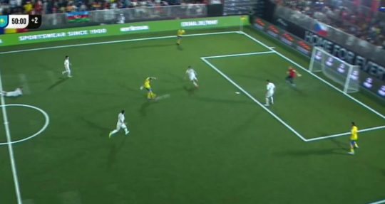 România a câștigat, la general, cu 14-13, în timpul regulamentar fiind 2-2 (0-1), scor rămas nemodificat și după cele două reprize prelungiri, iar la loviturile de departajare: 12-11. Finala a fost, realmente, una de infarct, Kazahstanul conducând cu 1-0, la pauză, grație unui autogol și, apoi, chiar cu 2-0, după o eroare mare, la centrul terenului. Când mai erau două minute (foto sus, în text) din timpul de joc inițial (2 x 25 minute), s-a intervenit din camera VAR, în care a fost văzut un penalti, scăpat de arbitri de la marginile terenului. S-a acordat lovitura de la “7 metri” cuvenită și s-a redus scorul de către golgheterul Balogh (numărul 15). Tot el a egalat fantastic, 2-2, în al doilea și ultimul minut de prelungire (foto sus, în text, cu momentul șutului)!