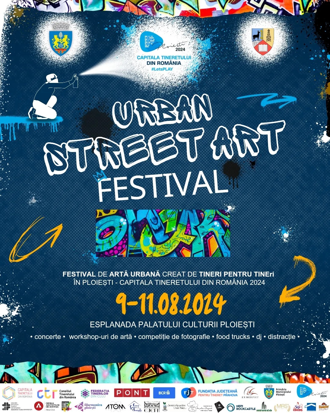 În centrul Ploieștiului, pregătim un festival plin de creativitate, conceput special de tineri pentru TINEri! Te așteptăm alături de noi în perioada 9-11 august pentru a te bucura de distracție îmbinată cu artă urbană, în Capitala Tineretului din România.