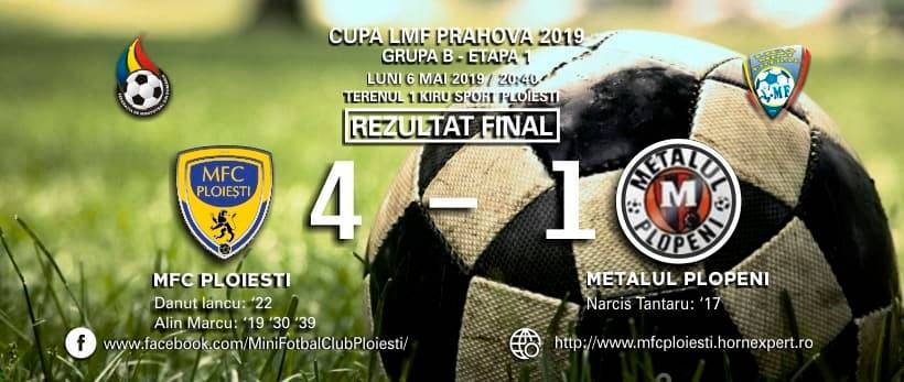 În urmă cu o săptămâna, așa cum am anunțat la momentul potrivit, în derbiul Grupei B din cadrul fazei județene a Cupei României la Minifotbal, deținătoarea trofeului, MFC Ploiești, a întâlnit-o pe Metalul Plopeni. A fost o confruntare contând pentru prima etapă a Cupei LMF Prahova 2019.