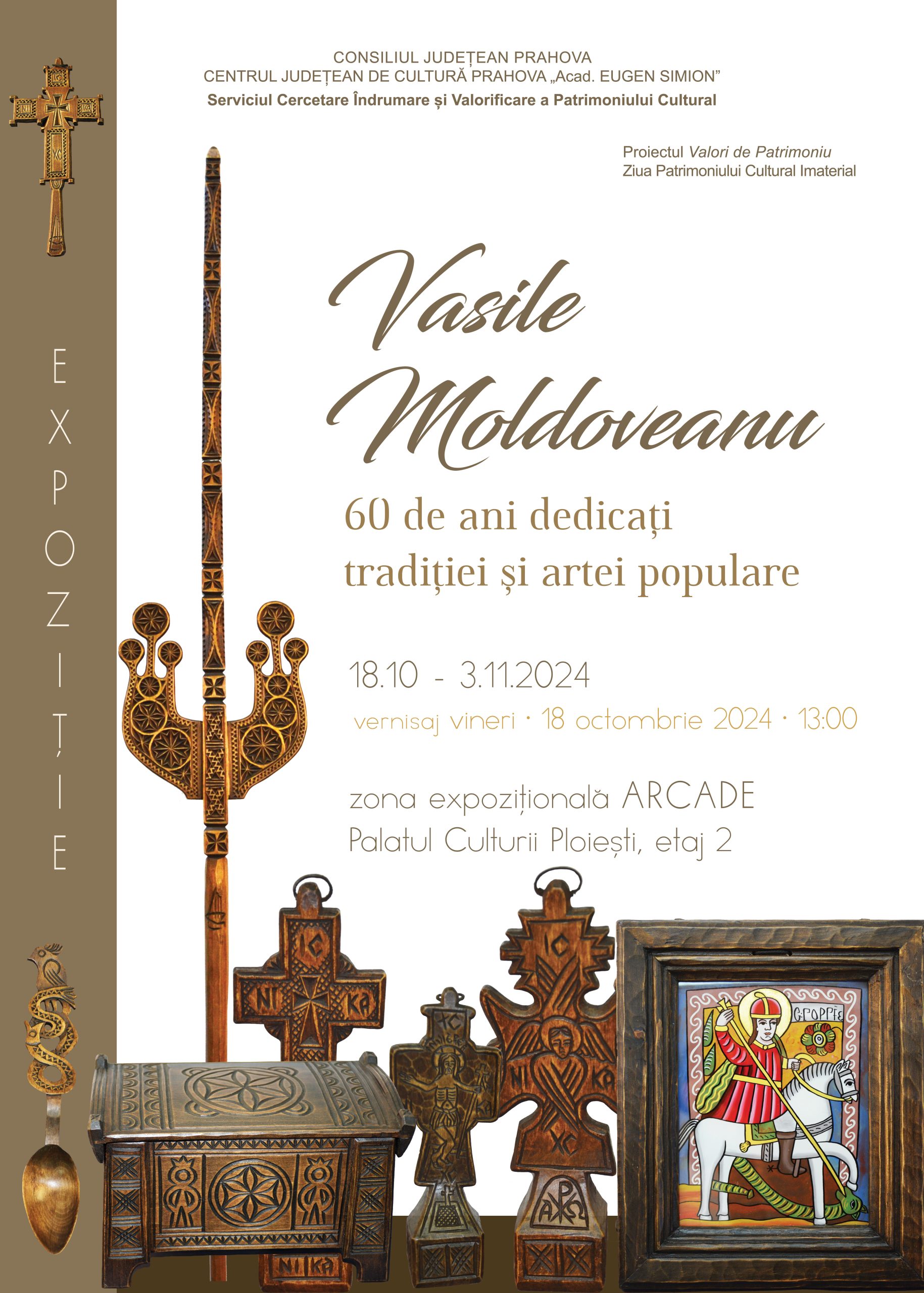 Cu prilejul Zilei Patrimoniului Cultural Imaterial, instituția noastră organizează în perioada 18 octombrie – 3 noiembrie 2024 Expoziția Vasile Moldoveanu – 60 de ani dedicați tradiției și artei populare, cu lucrări realizate de meșterul popular Vasile Moldoveanu din municipiul Moreni (județul Dâmbovița).