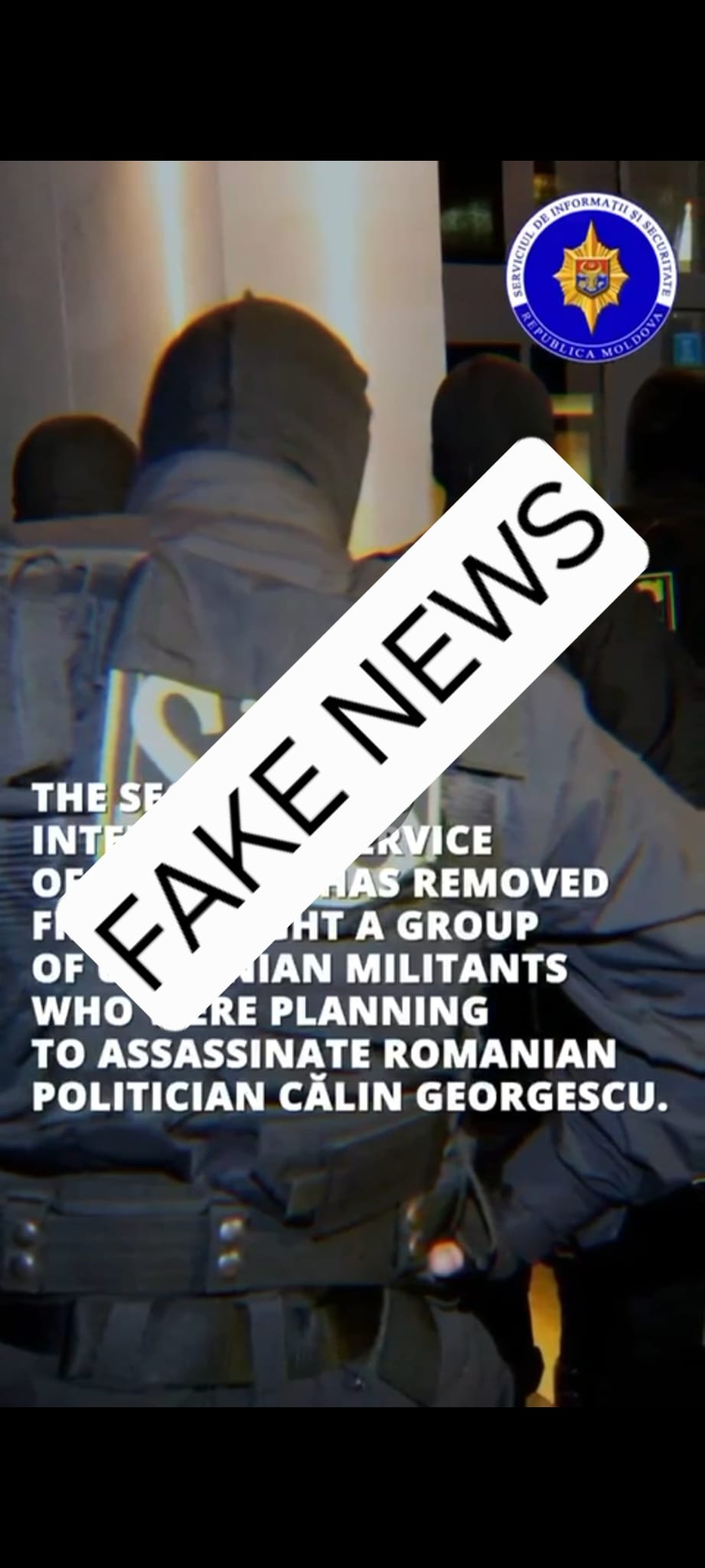 “În mediul on-line este promovat un mesaj, însoțit de un clip video, prin care sunt publicate informații false referitoare la un așa numit grup de persoane care ar fi încercat să producă un asasinat pe teritoriul României.