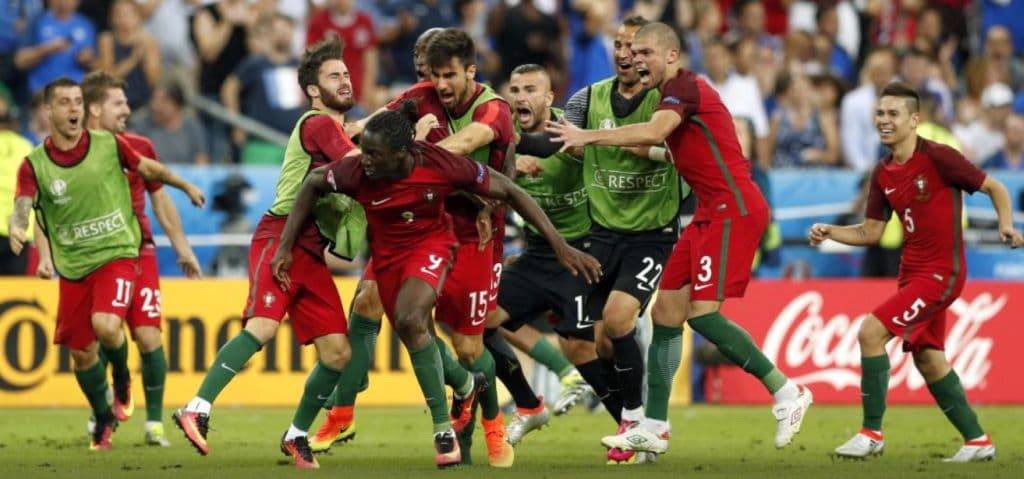 Nu s-a marcat nici în repriza secundă, una în care goal-keeper-ul lui Sporting Lisabona a continuat să facă… minuni, nu degeaba fiind o țintă a italienilor de la Internazionale Milano. Dar, momentul pishologic s-a consemnat la ultima fază din timpul regulamentar, atunci când rezerva Andre-Pierre Gignac l-a întors pe Pepe, în colțul stâng al careului mic și a șutat apoi la raădăcina barei, Rui Patricio fiind doar atunci depășit. Cum balonul a deviat într-o zonă în care golgheterul de la EURO 2016, Antoine Griezmann, nu-l mai putea ajungea, remiza albă s-a păstrat. Intrată în pelungiri, culmea, Portugalia s-a simțit precum peștele în apă, contraatacul funcționându-i mai bine. În plus, Fernando Santos, cel care îl scosese din… joben, dincolo de grupe, pe junele Renato Sanches, a făcut-o la fel cu Eder, care bifase, înainte de EURO, doar trei selecții la echipa națională și un singur gol. Al doilea, cel din minutul 109, avea să aducă însă titlul european Portugaliei – primul din istoria sa! Obosiți parcă prea mult – drept dovadă că omul primei reprize, Moussa Sissoko, ajunsese să… umble pe teren, după ce arătase, ca și Kingsley Coman, ceva mai târziu, spinturi demne de Usain Bolt -, francezii din apărare, cu precădere Samuel Umtiti, l-au scăpat pe echipierul… francezilor de la Lille OSC. Eder (foto, în mijloc, felicitat de coechipierii lui; www.gsp.ro) a șutat pe jos, de la 25 de metri, direct în colțul din dreapta al porții căpitanului Hugo Lloris. Reușită care a venit însă după o transversală ochită din lovitură liberă, executată cam de la aceeași distanță, ca la gol, de către fundașul stânga portughez Raphael Guerriero, de la o altă grupare din Hexagon, Lorient! Pormițător fotbalist acest tiz al fostului petrolist Ludovic Guerriero! Deși au mai avut la dispoziție 11 minute, ba chiar o fază bună în ultima secundă a finalei, “cocoșii” au terminat… jumuliți! Cu 55%-45% avantaj la posesie, 17-6, la raportul șuturilor la poartă, și 7-1 la cel pe poartă, după 90 de minute de joc, dar cu 0-1 pe tebală, după 120 de minute, Franța nu se va mai… plimba prin Paris, în autocarul deschis pregătit pentru campioana Europei! A învins-o o echipă care l-a pierdut repede pe cel mai bun om al ei, a făcut trei remize în grupă, a eliminat Croația în minutul 117, în optimi, a avut nevoie de lovituri de departajare în sferturi și a câștigat un singur meci în 90 de minute, semifinala cu Țara Galilor! Dar, știți cum se zice, așa-i fotbalul! Îi trebuia și lui Cristiano Ronaldo un trofeu la nivel de echipă națională și l-a cucerit. Cum îl va cuceri cert și pe cel de fotbalist al anului 2016, după ce a câștigat și Liga Campionilor, cu Real Madrid!
