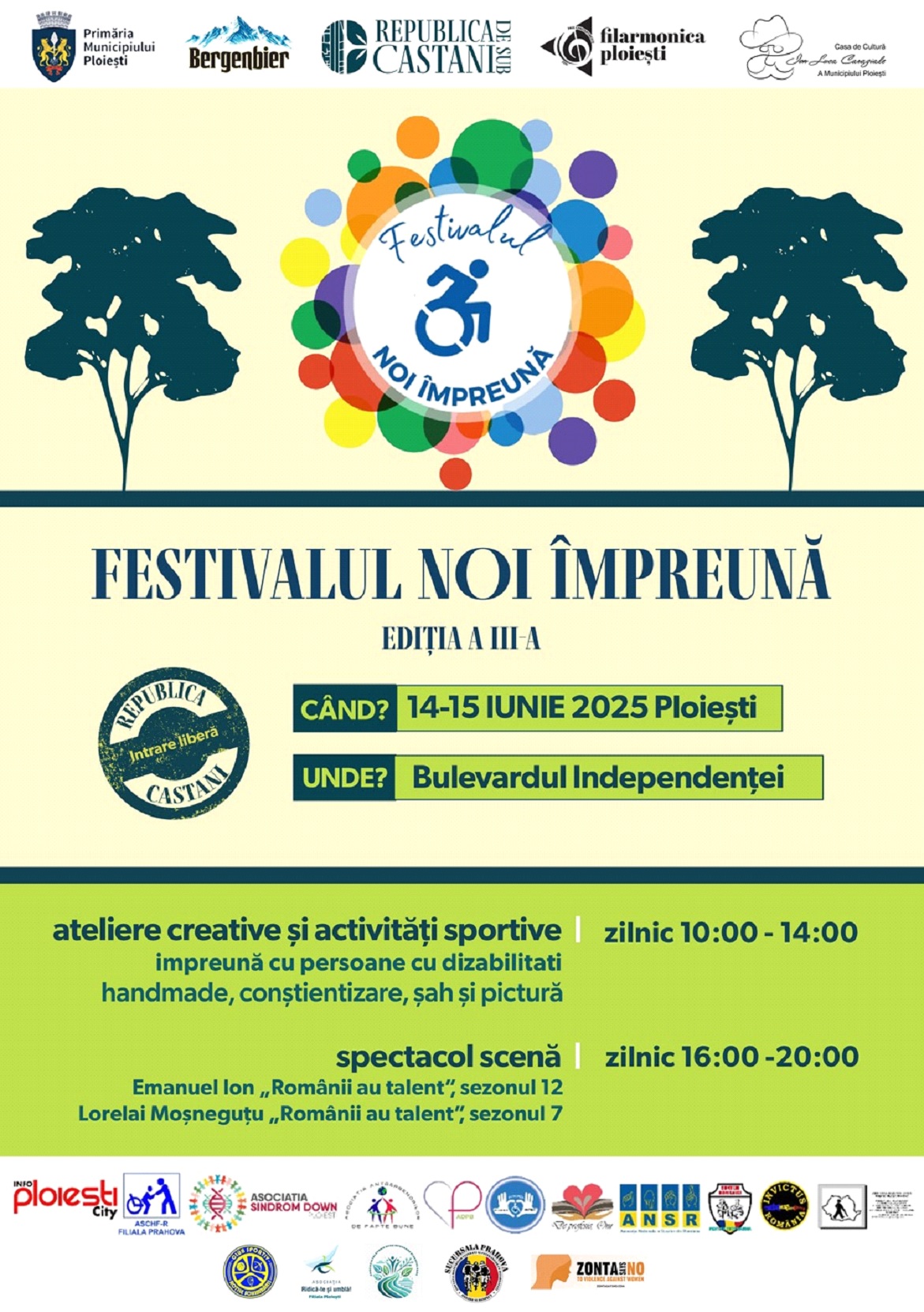 Primăria Municipiului Ploiești și Casa de Cultură “Ion Luca Caragiale” a Municipiului Ploiești organizează cea de-a III-a ediția a Festivalului dedicat persoanelor cu dizabilități “Noi Împreună”.