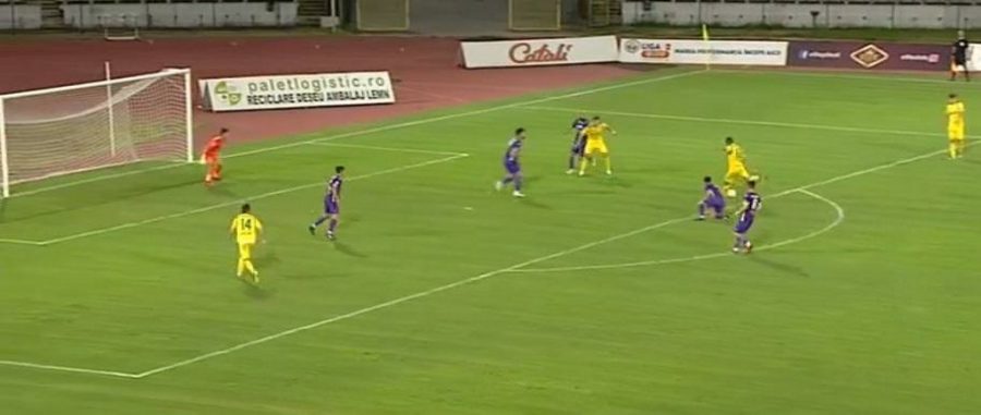 CS Mioveni, care venea după un singur punct adjudecat pe teren propriu, ulterior unei “duble” consecutive acolo, 0-0 cu Fotbal Club Rapid București și 0-2 cu UTA Arad, a revenit, prin succesul din derbiul argeșean, în cărțile promovării, urcând pe poziția de baraj! În schimb, trupa lui Ionuț Badea parcă se văzuse, probabil, cu toții sacii urcați în căruță până în minutul 68! Mai precis, minutul egalării reușite de Ionuț Rădescu, cu un șut pe jos, după o “foarfecă” ratată a tizului coechipier Ionuț Burnea. În final, Marian Anghelina (foto jos, la minge) a marcat la gafa lui Răzvan Ducan, portarul detașat de la FCSB, reușita din minutul 89 consfințind o victorie la care cred că nici cel mai optimist fan din orașul fabricii Dacia nu mai spera! Cu acest succes, Miovenii au întrerupt debutul bun al lui Andrei Prepeliță & Co., cei care bifaseră un 0-0, la Turris-Oltul Turnu Măgurele, și un 2-1, în “Regie”, la Rapid! Deci, acum, punctaj total egal, după primele trei etape, al celor două formații din județul Argeș, cu același avantaj de o lungime în favoarea “galben-verzilor”, ca și înaintea startului play-off-ului. Lider continuă să fie UTA (29 de puncte), pe poziția a doua se află Turris (25), pe trei, reamintesc, CS Mioveni (24), imediat mai jos este FC Argeș (23), iar pe ultimele două locuri, FC Petrolul Ploiești (22) și, respectiv, Rapid (21). În etapa a IV-a, sunt programate următoarele partide: UTA – Rapid (duminică, 26 iulie 2020, ora 17.00), Turris – CS Mioveni (marți, 28 iulie, 17.00) și Petrolul – FC Argeș (marți, 28 iulie, 19.00).