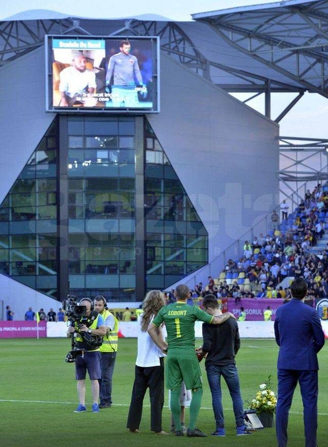 În momentul intonării imnului național, strângându-se după umeri cu cei de pe bancă și având ochii în lacrimi, Bogdan Lobonț era conștient că-l asculta pentru ultima dată, în postură de jucător! Iar la vederea acelui banner uriaș de mulțumire, desfășurat la tribuna a II-a, emoțiile l-au copleșit din nou! În minutul 86, la scorul de 2-0, cel care avea să fie și cel final, Lobonț a fost chemat la marginea terenului, ridicându-se tabela electrică, pentru a se anunța că iese din joc numărul 12, Tătărușanu, și intră numărul… 86 (cel al selecțiilor) Bogdan Lobonț. Au fost ultimele cinci minute ale unei cariere de lăudat, minute în care a apucat să repună o minge din colțul careului mic și să apere și un șut ce se putea anunța periculos, în prelungiri. Mult mai multe făcuse însă în cele 85 de selecții precedente, fiind un titular inamovibil, ani de-a rândul, între buturile României! În momentul când s-a îndreptat spre poarta dinspre peluza 1 și și-a luat locul între buturi, galeria de acolo, cea a Petrolului, l-a ovaționat și aplaudat, scandându-i numele, impresionându-l la maxim! La fel cum a procedat la final de meci cu selecționerul Cosmin Contra, care le-a mulțumit cu mâna la inimă ultrașilor, așa cum o făcea când era antrenorul principal al trupei “lupilor”!