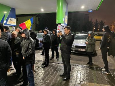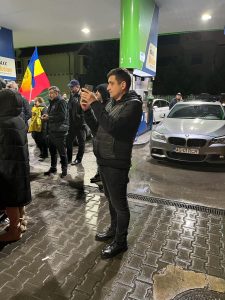 George Simion cu protestatarii AUR au ocupat benzinăria OMV din nordul Ploieștiului (imagini)
