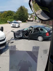 Vă prezentăm imagini de la accidentul petrecut astăzi, în staţiunea Busteni, pe DN1. Au fost două autovehicule implicate, cu 8 ocupanţi. Aceştia au refuzat transportul la spital.
