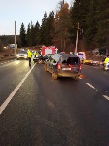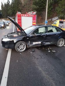 Un accident rutier a avut loc astăzi, la amiază, pe DN1, pe raza localității Azuga, la km 137+50. au fost implicate doua autoturisme, fiind rănite 5 persoane. Două dintre victime au fost transportate la Unitatea Primiri Urgențe a Spitalului Județean Ploiești, cu fractură membru inferior si traumatism cranio-cerebral.