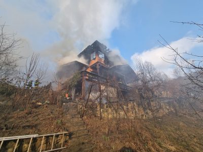 Inițial, incendiul a cuprins acoperișul, pe o suprafață de aproximativ 150 mp.