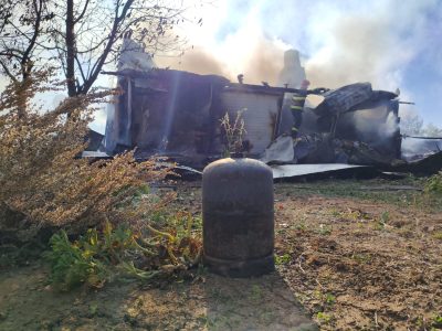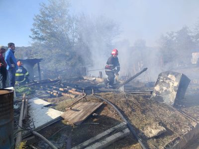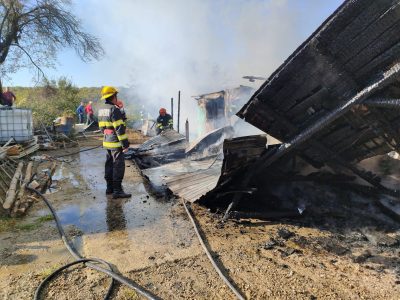 Incendiul s-a manifestat la nivelul casei și la o anexă gospodărească.