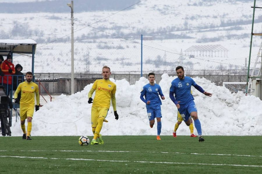 La prima apariție oficială în anul 2019, antrenorul principal al Petrolului, Mugurel Cornățeanu, și-a dorit, la Târgu Jiu, în meciul cu mult întinerita echipă a Pandurilor, să alinieze un prim “11” pe modelul celui când între buturi era ales Tordai Arpad. Cum acesta a fost rechemat la Viitorul, iarna asta, locul lui ar fi trebuit să fie luat astăzi, 24 februarie, de un alt goal-keeper “U 21”, mai precis nou-venitul de la FC Botoșani, Ianoș Brînză. Însă, moldoveanul de peste Prut detașat la Ploiești, de la trupa lui Liviu Ciobotariu, a avut ghinionul să acuze o accidentare în timpul mișcărilor de încălzire, obligându-l pe Cornățeanu să facă rapid permutări în echipa care trebuia să intre pe teren din minutul 1. Astfel, Sergiu Arnăutu a trecut pe bancă, pentru a juca Alexandru Saim Tudor, un “U 21”, în vederea refacerii numărului de trei obligatorii. Asta fiindcă în poartă a fost trimis un alt nou-venit, Cezar Lungu. Din fericire pentru “lupi”, formația lor nu a fost afectată de schimbările forțate de indisponibilitatea neașteptată a lui Brînză, încă din primul sfert de oră al unui meci disputat pe un teren sintetic înghețat – erau 7 grade Celsius afară, la acea oră – “galben-albaștrii” dându-i emoții, la ocaziile mari ale lui Robert Moldoveanu, fostului junior petrolist Mihai Cotolan. Poate astfel s-o fi și explicat eroarea de începător din minutul 15, atunci când portarul gazdelor a scăpat în față mingea centrată de pe stângă de Chrysovalantis Kozoronis, din lovitură liberă, Sebastian Ghingă neputând refuza “cadoul”, el trimițând cu dreptul, din 7 metri, central, mingea în plasă, cu toate eforturile geamănului Nicolae Cotolan!