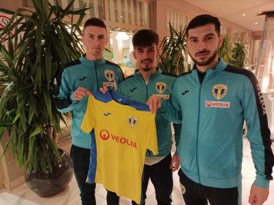 Duminică, 6 februarie 2022, în zi liberă obișnuită, președintele executiv al FC Petrolul Ploiești, Costel Lazăr (foto sus, în dreapta), ajuns “într-un picior” la Lara, aflat fiind în plină perioadă de convalescență după o operație la tendonul ahilean, a parafat – avându-l alături pe directorul sportiv Claudiu Tudor (foto sus, în stânga) – contractele cu trei jucători tineri noi. Actele sunt semnate pentru o perioadă de doi ani și jumătate, mai exact până în vara lui 2024, cu opțiune de prelungire. Este vorba despre românii Sebastian Moroz (portar; 23 de ani) și Marius Cioiu (mijlocaș de bandă; 22 de ani), plus bosniaco-croatul Vedran Vrhovac (fundaș central dreapta; 23 de ani). Ei vin de la Astra Giurgiu (Liga 2), Academica Clinceni (Liga 1) și, respectiv, Zeljeznicar Sarajevo (primul eșalon din Bosnia-Herțegovina). S-ar părea, altfel, că dintre ultimele trei surprize despre care se zvonea că ar mai fi fost preconizate, numai una ar fi rămas de actualitate. Drept urmare, transferurile s-ar încheia astfel acum, deși deadline-ul perioadei de mercato de iarnă va fi peste o săptămână. Spre deosebire de Vrhovac (foto, lângă Claudiu Tudor), care a fost titular contra echipei SKA Rostov-pe-Don (Liga 3 din Rusdia), ceilalți doi au prins, și ei, minute în repriza secundă a primului joc-test disputat integral în Turcia. Asta deoarece cel dintâi – cu prim-divizionara sârbă FK Radnik Surdulica, de joi, 3 februarie – a fost anulat după numai 10 minute, din cauza unei furtuni puternice, la scorul de 1-0 pentru “lupi”, ulterior unei reușite de senzație a lui Alexandru Saim Tudor (5). Moroz (foto, lângă Costel Lazăr) l-a înlocuit pe titularul Raul Avram, în partea a doua a jocului de sâmbătă, 5 februarie, nemaiprimind vreun gol, scorul final fiind 5-1 (3-1) pentru FC Petrolul, iar Cioiu (foto, între Vrhovac și Moroz) a intrat în trioul ofensiv al găzarilor. Aprecieri corecte față de prestația celor trei, ca și a celorlalți noi coechipieri ai lor, nu se pot face însă, câtă vreme meciul amical cu SKA Rostov-pe-Don nu a putut fi vizionat live decât aproape cinci minute, cele după care intrenetul a picat cu totul și nici nu și-a mai revenit!