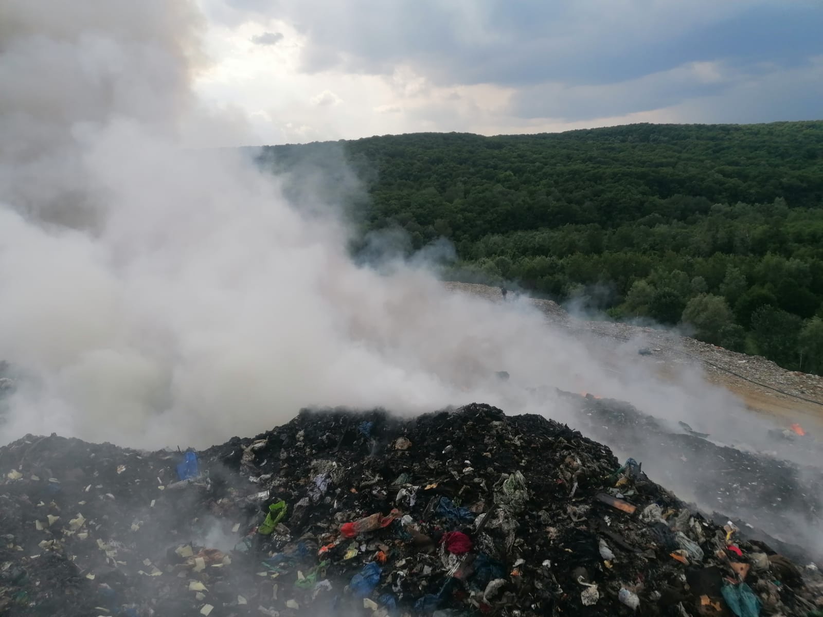 Incendiu la groapa de gunoi din Boldesti-Scaeni. Incendiul se manifesta pe o suprafață de aproximativ 600 mp, cu flacără, generalizat.