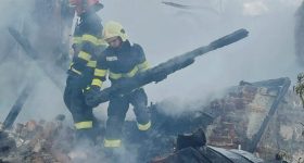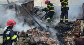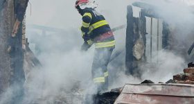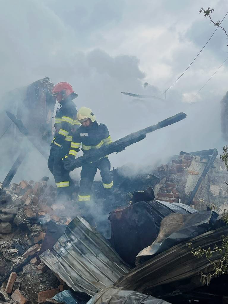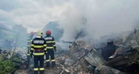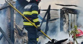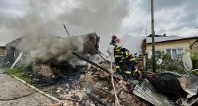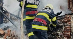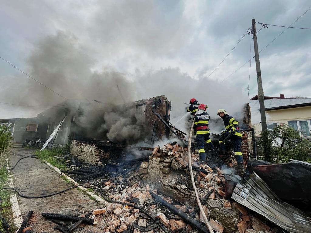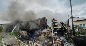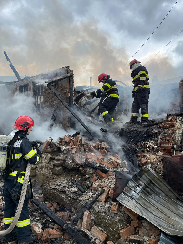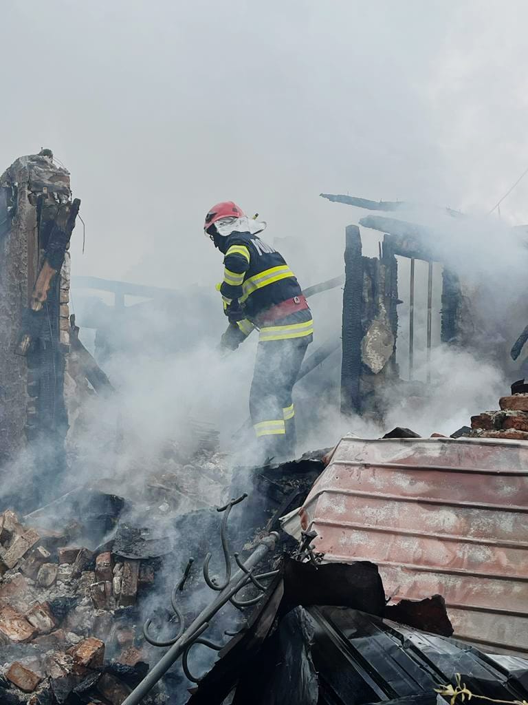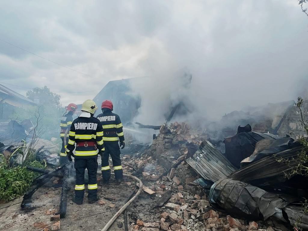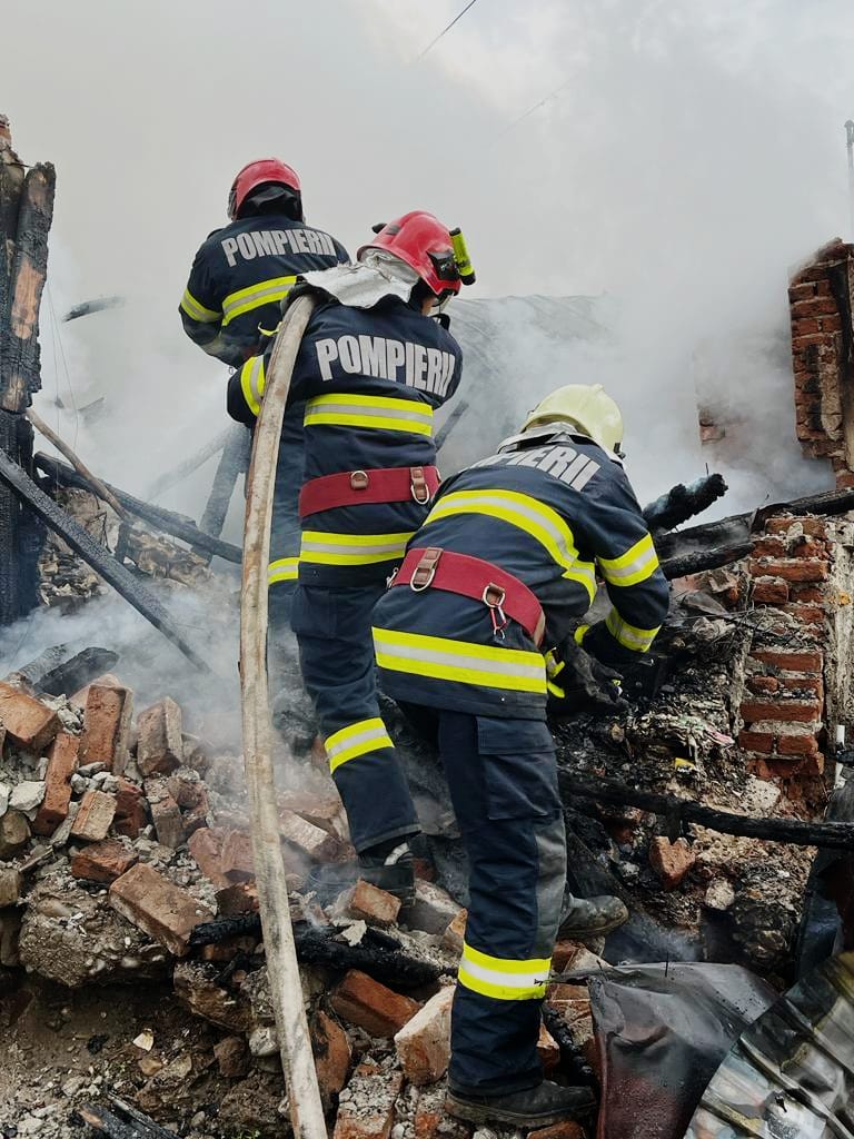 GALERIE FOTO – Incendiu la o locuinţă din Băneşti. Trupul carbonizat al unui bărbat, găsit în casă după stingerea focului