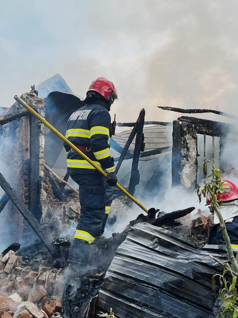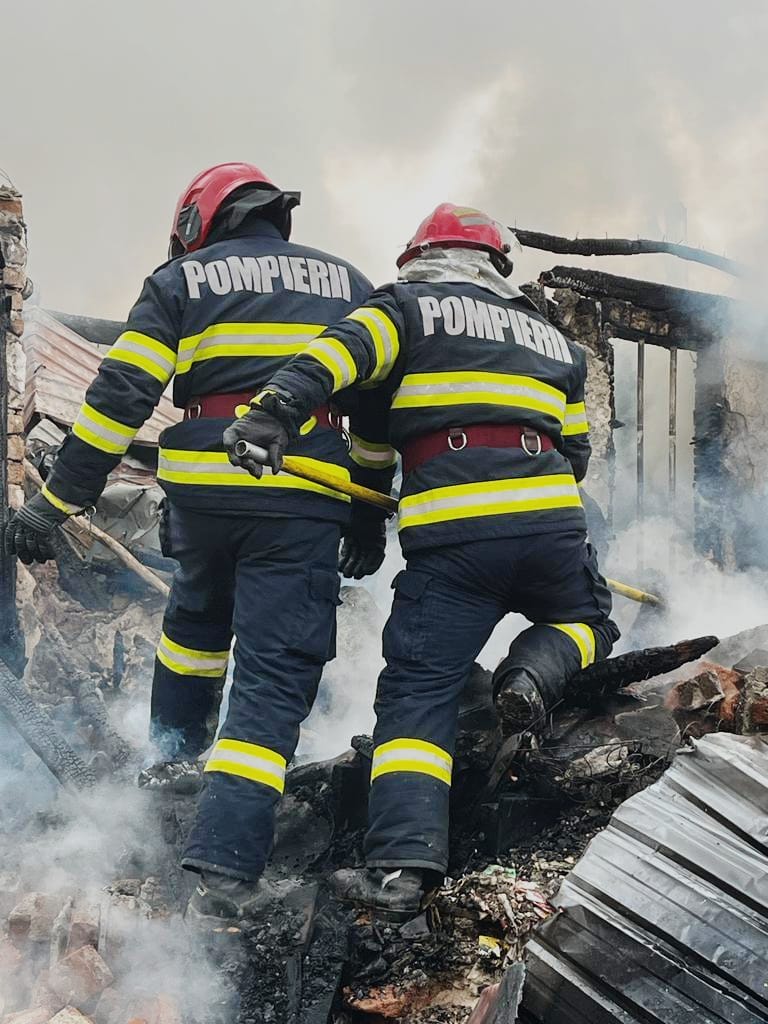GALERIE FOTO – Incendiu la o locuinţă din Băneşti. Trupul carbonizat al unui bărbat, găsit în casă după stingerea focului