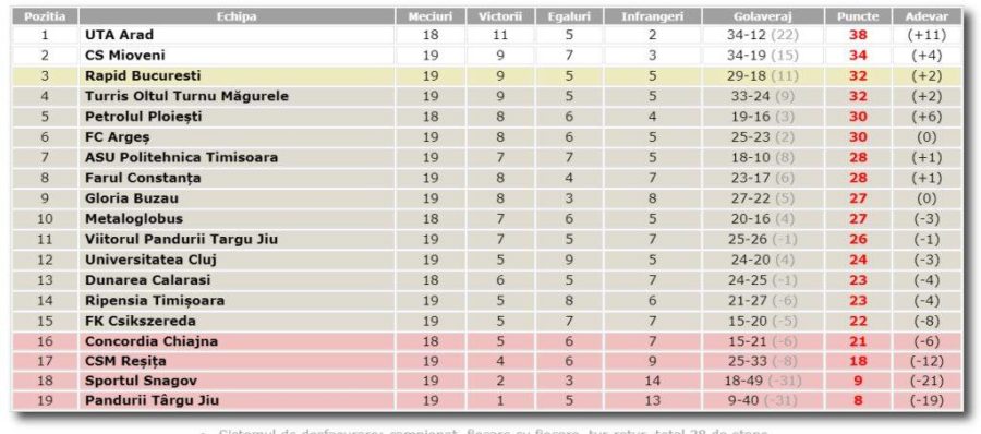 Cu șase puncte câștigate, nu cred că și cu patru, se va reuși un stand-by în trioul de frunte, dar și ținerea la respect a Argeșului, care, spre deosebire de ASU Poli și Farul, și-a anunțat clar dorința atacării promovării. Un X la Arad, după un 1 la Ploiești – Turrisul nemaiputând emite pretenții, pentru că a terminat partidele din acest an, stând în runda a doua a returului – și Petrolul nu va mai rămâne pe podium, Miovenii având deja golaveraj mult mai bun și prima șansă la Reșița, cu CSM-ul lui Dorinel Munteanu, jucând mai bine afară decât acasă, iar Rapidul, la Chiajna, bine susținută de către fanii săi, care vin în număr mare la meciuri, se poate revanșa în fața lor după eșecul din această rundă, de la Constanța. Pe scurt, cu două succese, Laurențiu Marinescu și coechipierii săi vor termina sigur anul pe locul trei, pentru a doua poziție fiind nevoie și ca fostul petrolist Dean Beța & Co. să nu câștige pe arena din Valea Domanului și să facă cel mult 35 de puncte. Despre lider, UTA, nu zic nimic, fiindcă s-a detașat, are 38 de puncte, și va juca, etapa aceasta, duminică, 1 decembrie, de la ora 13.00, în deplasare, la Călărași, cu Dunărea, iar în ultima din an, acasă, reamintesc, cu Petrolul. Și dacă ar pierde ambele meciuri, nu mai poate fi ajunsă nici de CS Mioveni, care mai poate face maximum 37 de puncte, nici de “lupi”, care mai mult de 36 nu au cum să bifeze, nici de Rapid, în prezent cu 32 de puncte și un singur duel rămas de jucat.
