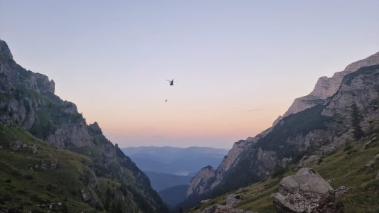 Intervenție Salvamont cu elicopterul în Munții Bucegi