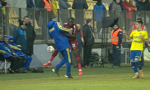 Luni seară, pe un teren la fel de prost ca și până acum – bine însă că nu și cu noroi! -, Țicu și coechipierii săi, dintre care au lipsit Huja, Meijers și Papp, pentru motivele deja știute, plus Budescu, lăsat pe bancă și introdus pe teren atunci când meciul cam era decis, au capotat în fața campioanei en-titre, CFR Cluj. Jucătorii lui Florin Pârvu (foto jos), antrenor ce putea să fie… accidentat de către masivul Boateng, de la CFR, încă din startul jocului (foto sus), au rezistat numai 11 minute. Adică, până în momentul în care mai noua vedetă a câștigătorilor titlului național în ultimele cinci sezoane, kosovarul Krasniqi, a primit o minge pe stânga, în propria jumătate de teren, aproape de linia care desparte cele două jumătăți de teren, a sprintat, pe stânga, a trecut de Pashov, a șutat pe jos, iar Leitner a fost oarecum păcălit de o deviere mică a lui Mathaus. Drept urmare, portarul austriac al ploieștenilor a respins în față, iar Deac l-a lobat ușor de pe linia careului mic, dintr-o poziție aproape centrală. Cu 0-1 pe tabelă încă din primul sfert de oră, Petrolul a scăpat de un 0-2, pentru că VAR-ul nu l-a convins pe centralul oltean George Găman de hențul făcut aproape de buturi de deja-amintitul capoverdian. Un fost arbitru a declarat totuși la un post TV că lovitura de cap a lui Janga a trimis balonul în brațul drept, aflat departe de corp, al lui Mathaus. Fostul central a decis astfel că nu a fost henț, ci corner. Pe scurt, exact decizia arbitrului. “Lupii” au terminat cu un deficit numai de un gol cea dintâi repriză, după ce și ei au ratat câteva oportunități de a marca, cea mai mare fiind a lui Grozav – din nou șters ca evoluție.